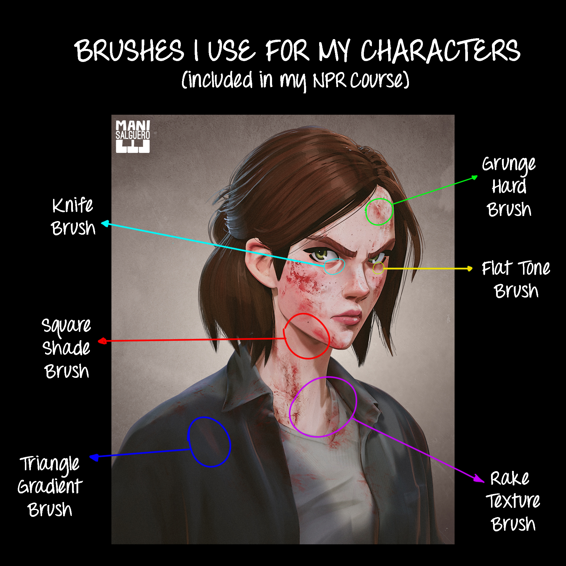 The brushes I use for my characters are included in the extra DLC version for Ellie.